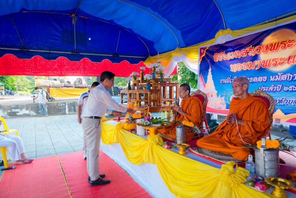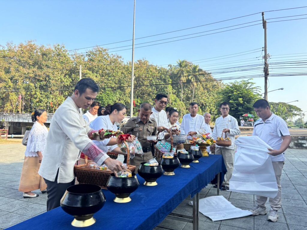 วันนี้ (12 พฤศจิกายน 2567) เวลา 07.00 น. นายธีระ แก้วมา นายอำเภอลองพร้อมด้วยนายศฤงคาร กันทะวัง ปลัดอาวุโสอำเภอลอง นายแสงสว่าง เสือขำ สมาชิกสภา องค์การบริหารส่วนจังหวัดแพร่ พ.ต.ท.นิคม คำเปรี้ยว สารวัตรอำนวยการ สภ.ลอง นายวิทยา แสนคำมูล กำนันตำบลห้วยอ้อ ผู้ใหญ่บ้านหมู่ที่ 6,7,8,9,10 และหมู่ 13 ตำบลห้วยอ้อ นายสมชาย จารุรัชต์ นายกเทศมนตรีตำบลห้วยอ้อ คณะผู้บริหารเทศบาล สมาชิกสภาเทศบาล พนักงานเทศบาล พนักงานจ้าง ประธานผู้สูงอายุตำบลห้วยอ้อ และประชาชนในเขตเทศบาล ตำบลห้วยอ้อ ได้ร่วมกันตักบาตรข้าวสาร – อาหารแห้ง ถวายพระสงฆ์ จำนวน 5 รูป และร่วมพิธีบวงสรวงพระนางจามเทวีและพระแม่คงคา ณ ลานอนุสาวรีย์พระนางจามเทวี (ริมลำห้วยแม่กาง) ตำบลห้วยอ้อ เนื่องในงาน “ประเพณีลอยกระทงยี่เป็งเมืองลอง นมัสการ พระธาตุห้วยอ้อ ประจำปี 2567” ซึ่งกำหนดจัดงานในระหว่างวันที่ 12 – 15 พฤศจิกายน 2567 ณ ลานอนุสาวรีย์พระนางจามเทวี (ริมลำห้วยแม่กาง) และวัดศรีดอนคำ เพื่อเป็น การอนุรักษ์วัฒนธรรม ประเพณีอันดีงาม