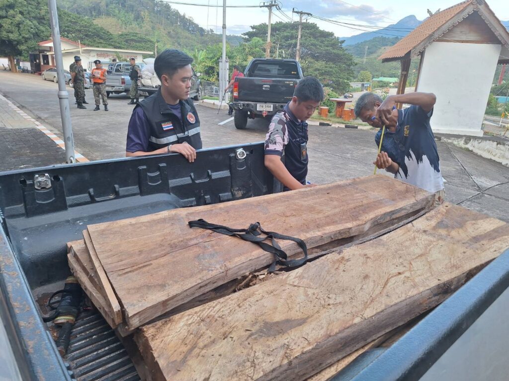วันที่ 24 พฤศจิกายน 2567 เมื่อวันที่ 23 พฤศจิกายน 2567 เวลา 1430 น.ชุดปฎิบัติการพิเศษร่วมบูรณาการ ประกอบด้วยฝ่ายปฎิบัติการพิเศษ ฉก.หม้อห้อม ( ร้อยบก.บร.) เจ้าหน้าที่ ตชด. ที่ 323 กก.ตชด.32 จ.พะเยา เจ้าหน้าที่ หน่วยป้องกันรักษาป่าที่ พร.5 ( ห้วยแก๊ต) เจ้าหน้าที่ ตำรวจ กก.4 บก.ปทส.จว.แพร่ สกัดการขนไม้หวงห้าม ณ บริเวณ บนถนนยันตรกิจโกศล หมายเลขที่ 101 ต.ไผ่โทน อ.ร้องกวาง จ.แพร่ เขตติดต่อระหว่างจังหวัดแพร่- จังหวัดน่าน โดยสกัดให้รถกะบะยี่ห้อ ISUSU รุ่นดีแม็กซ์ ทะเบียน บพ.666 แพร่ ภายท้ายรถมีกระสอบและพลาสติดสีดำปกปิดไม้ที่อยู่ด้านล่างพบไม้หวงห้าม ชิงชัน จำนวน 3 แผ่นเหลี่ยม ปริมาตร 0.091ลบ.ม.และไม้ประดู่แปรรูป จำนวน 9 แผ่นเหลี่ยม ปริมาตร 0.284 ลบ.ม.จึงทำการจับกุม ทราบชื่อ นายภาคภูมิ (ขอสงวนนามสกุล) อายุ 45 ปี อยู่ในพื้นที่หมู่ที่ 7 ต.ไผ่โทน อ.ร้องกวาง จ.แพร่