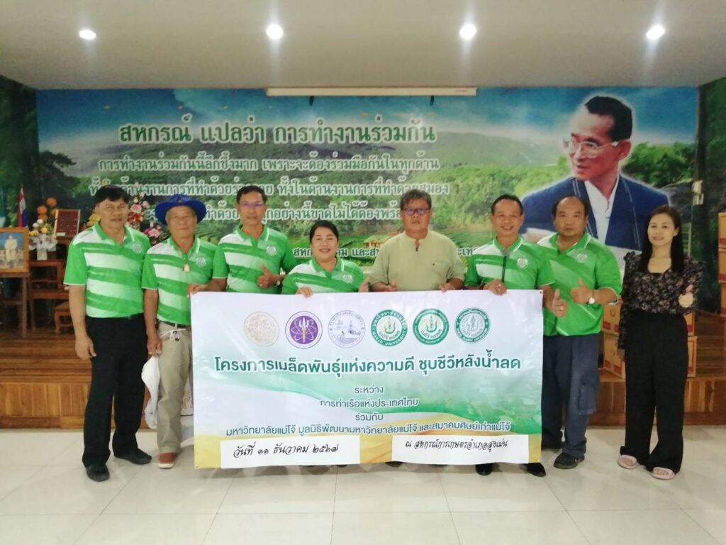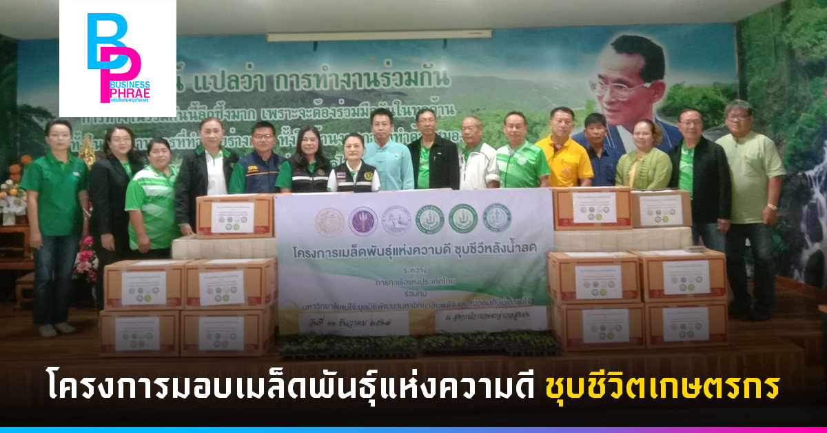 จากการประสานงานทางชมรมศิษย์เก่าแม่โจ้-แพร่ ร่วมกับ มหาวิทยาลัยแม่โจ้-แพร่เฉลิมพระเกียรติ จังหวัดแพร่ และ มหาวิทยาลัยแม่โจ้ จังหวัดเชียงใหม่ ได้รับงบประมาณสนับสนุนจากการท่าเรือแห่งประเทศไทย เพื่อจัดหาเมล็ดพันธุ์ผัก จำนวน 6 ชนิด มาทำการแจกจ่ายให้กับเกษตรกรที่ได้ผลกระทบกับการเกิดอุทกภัย น้ำท่วมในหลายพื้นที่จังหวัดแพร่ จังหวัดแพร่เป็นหนึ่งใน 10 จังหวัด ภาคเหนือที่ได้รับผลกระทบอุทกภัย น้ำท่วม ที่ผ่านมา จึงได้จัดโครงการ Kick Off ส่งมอบเมล็ดพันธุ์ผักแห่งความดี ชุบชีวิตหลังน้ำลด ในจังหวัดแพร่ จำนวน 3,000 ชุด