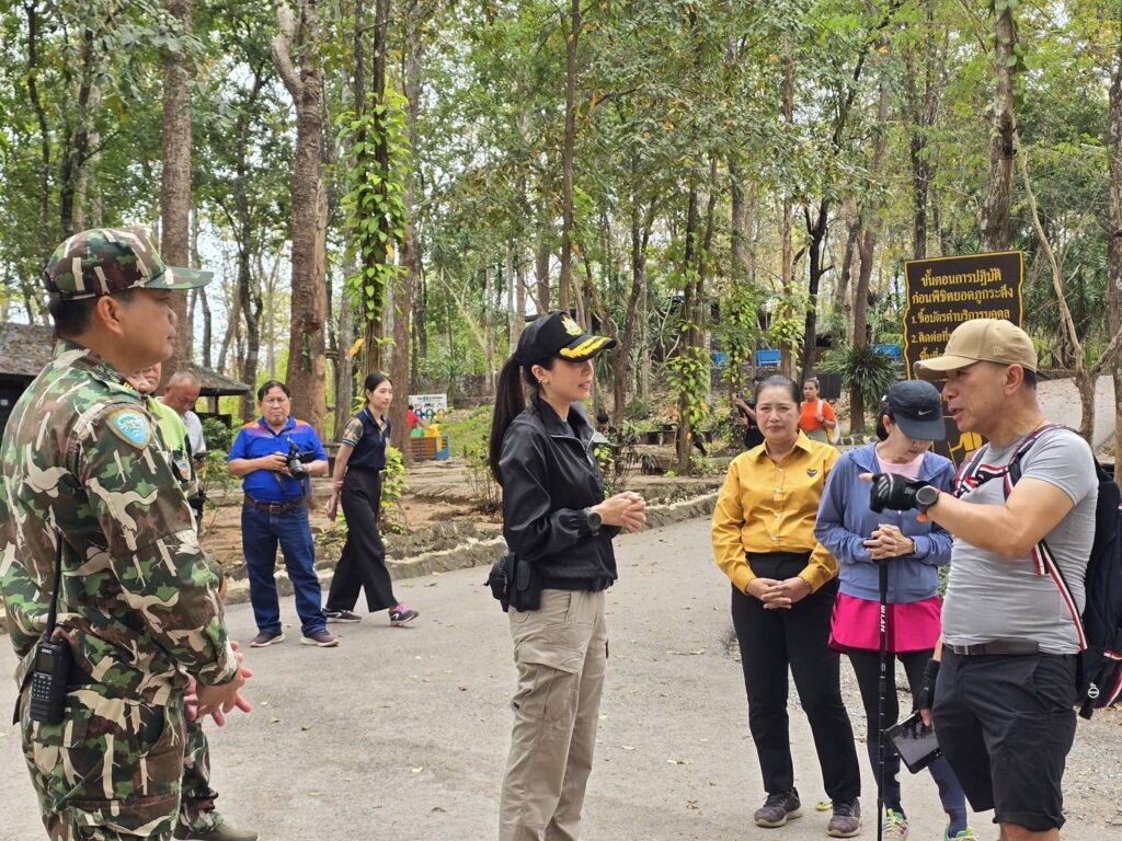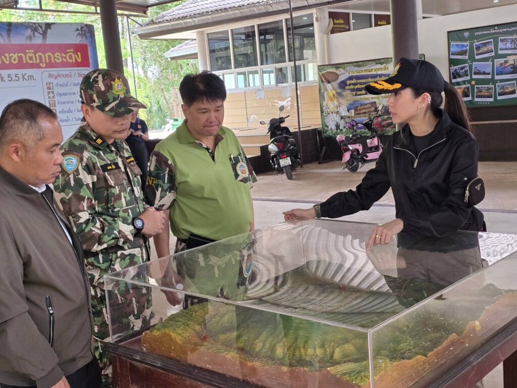 เมื่อวันที่ 13 ธ.ค. 2567 ที่ภูกระดึงจ.เลย น.ส.จิตภัสร์ ตั๊น กฤดากร รองหัวหน้าพรรคประชาธิปัตย์ (ปชป.) ในฐานะที่ปรึกษาของรัฐมนตรีว่าการกระทรวงทรัพยากรธรรมชาติและสิ่งแวดล้อม (รมว.ทส.) พร้อมนายจุลกร เมืองแก้ว ผอ.สำนักบริหารพื้นที่อนุรักษ์ที่ 8 ขอนแก่น ร่วมลงพื้นที่อุทยานแห่งชาติภูกระดึง อ.ภูกระดึง จ.เลย เพื่อรับฟังบรรยายสรุปกรณีเหตุการณ์ช้างป่าภูกระดึงทำร้ายนักท่องเที่ยวเสียชีวิต พร้อมมอบน้ำดื่มเพื่อสร้างขวัญและกำลังใจให้กับเจ้าหน้าที่และนักท่องเที่ยวที่ทยอยเดินทางกลับออกจากพื้นที่ หลังจากมีการประกาศปิดเขตอุทยานฯ ภูกระดึงเพื่อให้เจ้าหน้าที่และนักวิจัยสัตว์ป่าเข้าไปผลักดันและควบคุมช้างป่า จนกว่าพื้นที่ทั้งหมดจะปลอดภัย เพื่อให้สามารถเปิดอุทยานฯภูกระดึงรีบกลับมาดำเนินการพร้อมต้อนรับนักท่องเที่ยวในช่วงเทศกาลปีใหม่ที่กำลังจะมาถึง