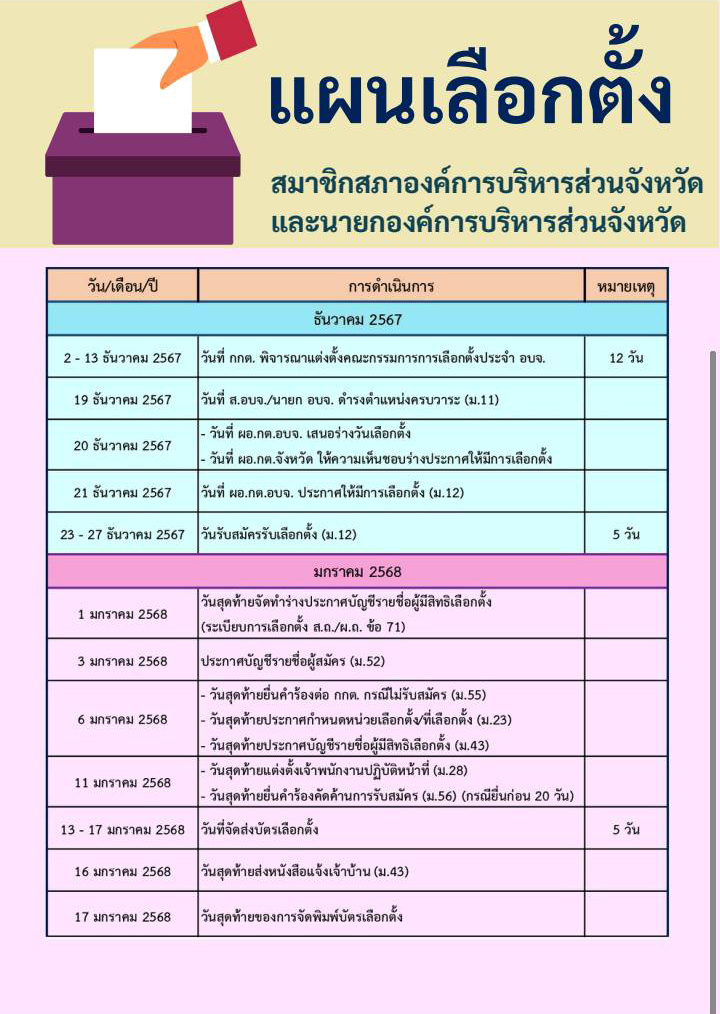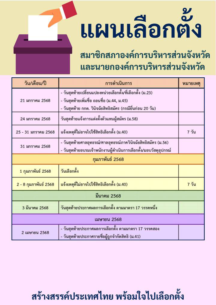 วันที่ 21 ธันวาคม 2567 เมื่อวันที่ 19 ธันวาคม 2567 การเมืองท้องถิ่นระดับจังหวัด ทั่วประเทศ ก็ครบวาระตามกฎหมายการดำรงตำแหน่งผู้บริหารและฝ่ายสภา ท้องถิ่น ครบวาระ 4 ปี แต่บางจังหวัด นายก อบจ.ก็ชิงลาออกแล้วกลับไปสมัครลงเลือกตั้งต่อ ด้วยเหตุและผลคือเอาเปรียบคู่แข่งลงรับสมัครการเลือกตั้ง แต่มีประชาชนเจ้าของประเทศผู้ที่เสียภาษี ย้อนถาม นายก อบจ.ที่ลาออกแล้วกลับมาสมัครการเลือกตั้งต่อ เป็นเพราะเหตุอะไร? นี่คือคำถามแต่หาคำตอบไม้ได้จากอดีต นายก อบจ.ที่ชิงลาออก แล้วลงรับสมัครใหม่ บางคนก็ประสบผลสำเร็จ บางคนก็แพ้ นั้นคือประเด็นกฎหมายการเลือกตั้งของประเทศไทย ที่สำคัญถ้า อดีตนายก อบจ.เหล่านั้นไม่ลาออการใช้งบประมาณการเลือกตั้งแต่ละครั้งเป็นงบประมาณเท่าไหร่? ทาง กกต.เคยชี้แจงให้กับประชาชนผู้เสียภาษีทราบมัย ว่ามันเสียงบประมาณแต่ละครั้งการเลือกตั้งเท่าไหร่? และขนานไหน พอหมดวาระ สมาชิกองค์การบริหารจังหวัด ทุกจังหวัดทั่วประเทศจะต้องมีการเลือกตั้งตามกฎหมายการเลือกตั้งกำหนด เท่ากับว่าบางจังหวัดที่อดีตนายก อบจ.ลาออกแล้วเลือกตั้งใหม่จะต้องนำงบประมาณมาใช้ถึง 2 ครั้ง นั้นคือประเด็นกับการนำงบประมาณมาใช้ซ้ำซ้อน ข้อกฎหมายที่ใช้ในปัจจุบันจะต้องแก้ไข หรือไม่?คาดโทษผู้ที่ได้รับการเลือกตั้งเข้ามาแล้วจะต้องให้อยู่ครบวาระ คือ 4 ปี ยกเว้นเสียชีวิตหรืออื่นใดที่ไม่อาจบริหารจัดการตามหน้าที่ได้ แต่ถ้าลาออกแล้วกลับมารับสมัครเลือกตั้งใหม่ นั้นเสมือนนำงบประมาณภาษีชาวบ้านมาใช้โดยไม่จำเป็น มันจำเป็นเฉพาะส่วนบุคคลนั้นๆ เท็จจริงอย่างไร ชาวบ้านวิเคราะห์กันเอง ในมุนมองของสื่อที่ฟังเสียงจากชาวบ้านผู้เสียภาษี มาเล่าสู่กันฟัง เป็นข้อคิดผู้ร่างกฎหมายกฎระเบียบว่าด้วยการเลือกตั้งท้องถิ่น หรือระดับประเทศ ให้ได้รับฟังเสียงสะท้อนจากเจ้าของประเทศคือ ประชาชน