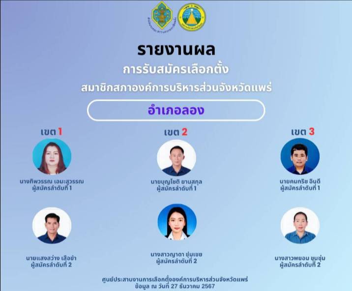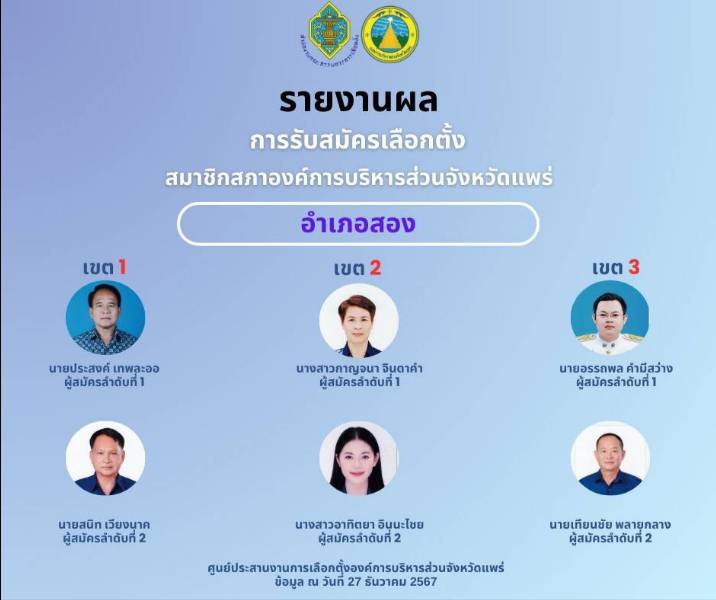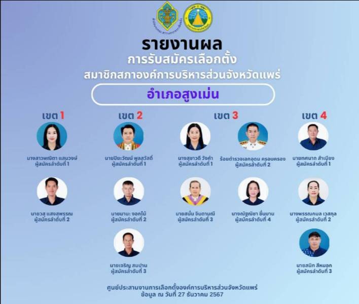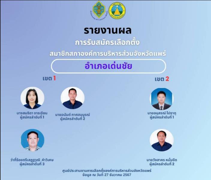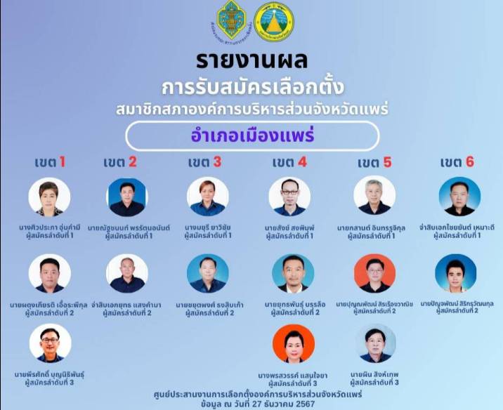 วันที่ 30 ธันวาคม 2567 นสพ.ธุรกิจแพร่-ออนไลน์ เกาะติดติดตามความเคลื่อนไหวการเมืองท้องถิ่นระดับจังหวัด พร้อมกันทั่วประเทศ ทุกจังหวัด กกต.กำลังตรวจสอบคุณสมบัติของผู้สมัคร ตั้งแต่ นายก อบจ.และ ส.อบจ ผลข้อสรุปน่าจะอยู่ไม่เกินวันที่ 3 มกราคม 2568 ที่จะรับรองผลคุณสมบัติของผู้สมัคร ว่ามีเขตไหนบ้างที่คุณสมบัติไม่ผ่าน ณ เวลานี้ผู้สมัครไม่ว่าจะเป็นว่าที่นายก อบจ.และส.อบจ.ที่ได้เบอร์ประจำตัวของผู้สมัครแล้วก็ตาม พร้อมทั่วประเทศ เมื่อสิ้นสุดการเปิรับสมัคร นายก และส.อบจ. ทั่วประเทศ เมื่อวันที่ 27 ธันวาคม 2567 ที่ผ่านมาแต่ยังเดินไปเคาะประตูขอคะแนนเสียงยังไม่ได้ เพราะต้องตรวจสอบคุณสมบัติก่อนและให้ทาง กกต.รับรองคุณสมบัติแล้วถึงจะเดินทางเสียง รถแห่ออกประชาสัมพันธ์ได้ ในจังหวัดแพร่ มีชาวบ้านให้ความสนใจเป็นกรณีพิเศษคือ การชิงชัย ว่าที่นายก อบจ.แพร่ มี 2 คน ที่ลงชิงชัย คือ เบอร์ 1 นายประสงค์ ชุ่มเชย เบอร์ 2 นาอนุวัธ วงศ์วรรณ (อดีตนายก อบจ.แพร่ หลายสมัย ) จะเป็นข้อพิสูจน์ว่าจะรักษาตำแหน่งไว้ได้หรือไม่ ชาวจังหวัดทั้ง 8 อำเภอ 78 ตำบล 708 หมู่บ้าน 18 ชุมชน 1 เทศบาลเมือง มีเทศบาลตำบล 25 แห่ง และมี อบต.57 แห่ง ผู้มีสิทธิ์เลือกตั้ง 368,606 คน( ข้อมูลในปี 2565) นี้คือคะแนนเสียงของ ว่าที่นายก อบจ.แพร่ ส่วน ส.อบจ.แพร่ มีทั้งหมด 24 เขต การเลือกตั้ง ในแต่ละอำเภอมีเขตหน่วยเลือกตั้งดังต่อไปนี้ อ.เมืองแพร่ มี 6 เขต อ.สูงเม่น มี 4 เขต อ.เด่นชัย มี 2 เขต อ.หนองม่วงไข่ มี 1 เขต อ.สอง มี 3 เขต อ.ร้องกวาง มี 3 เขต อ.ลอง มี 3 เขต และ อ.วังชิ้นมี 3 เขต ในแต่ละเขตมีภาพและชื่อตามแนบเสนอท้ายข่าว หย่อนบัตร ในวันเสาร์ที่ 1 กุมภาพันธ์ 2568 ถือว่าจังหวัดแพร่ เป็นเขตการเลือกตั้งที่มี นายก อบจ.และ ส.อบจ.มีค่ายพรรคการการเมืองระดับเทศ ที่ฝ่ายรัฐบาลเป็นแบล็คหลังอยู่ ส่วนเขตอื่น ๆ ในแต่อำเภอลงในนามอิสระแต่ชาวบ้านทราบดีว่า พรรคการเมืองไหนอยู่เบื้องหลังของผู้สมัคร นายก อบจ.และ ส.อบจ.คำตอบคือผู้มีสิทธิ์มีเสียงว่าจะชอบหรือเอาแบบไหน ชอบพรรคการเมืองใหญ่หรือชอบตัวบุคคล คำตอบ วันเสาร์ที่ 1 กุมภาพันธ์ 2568 ตั้งแต่ เวลา 08.00-17.00 น. ทิศทางที่จะเปลี่ยนคือ ปัจจัยเป็นตัวกำหนดของคะแนนเสียง ผู้ที่จะมาคุมเกมการเลือกตั้งครั้งนี้ คือ 5 เสือ กกต.จ.แพร่ ประกอบด้วย นายสุรศักดิ์ ภู่ประดิษฐ์ นายธวัชชัย ประทักษ์ใจ นายนิมิต ผดุงศิลป์ไพโรจน์ เรืออากาศตรี อดุลย์ พรหมวาทย์ ( อดีตนายอำเภอสูงเม่น และ อำเภอจูน จ.พะเยา) และ พันตำรวจเอก ประสิทธิ์ กันกา จะเป็นผู้คุมเกมให้อยู่ในข้อกฎหมายการเลือกตั้งและตรวจสอบในเชิงลึกกับการที่ผู้สมัครทำผิดกฎข้อร