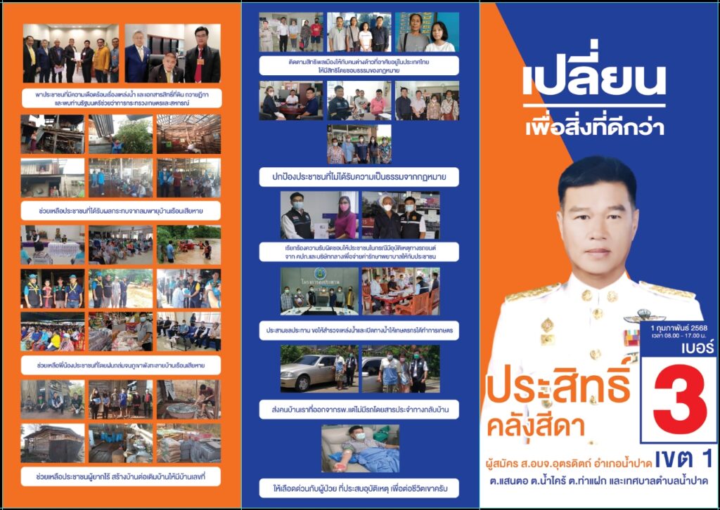 วันที่ 7 มกราคม 2568 บก.นสพ.ธุรกิจแพร่-ออนไลน์ ได้ให้การสัมภาษณ์ ว่าที่ผู้สมัคร ส.อบจ.อุตรดิตถ์ เขต 1 เบอร์ 3 ในพื้นที่ อ.น้ำปาด ต.แสนตอ ต.น้ำไคร้ ต.ท่าแฝก และเทศบาล ต.น้ำปาด นายประสิทธิ์ คลังสีดา ถือว่าเป็นบุคคลที่ช่วยเหลือชาวบ้านมาโดนตลอด ประกอบกับได้ลงรับสมัครเลือกตั้ง ส.อบจ.อุตรดิตถ์ มาแล้วสมัยหนึ่ง ที่สำคัญ เป็นตัวแทนพรรคประชาธิปัตย์ ประจำจังหวัดอุตรดิตถ์ ลงรับสมัครเลือกตั้ง ส.ส.มาแล้วถึง 2 สมัยในนามพรรค ประชาธิปัตย์ จึงมีประสบการณ์ด้านการช่วยประชาชนในพื้นที่เป็นอย่างดี ไม่ว่าจะเป็นการช่วยเหลือพี่น้องชาวบ้านในพื้นที่ที่ครอบครองที่ดินที่มีปัญหากับภาครัฐ เรื่องพืชผลทางด้านด้านการเกษตร ชาวบ้านมีปัญหาเรื่องราคาตกต่ำ เพราะในพื้นที่ชาวบ้านมีอาชีพด้านการเกษตรเป็นหลัก ที่สำหรับมีปัญหาเรื่องที่ดินทำกินซับซ่อนกับนิคมสร้างตนเองลำน้ำน่าน ในกระทรวงพัฒนาสังคมและความมั่นคงของมนุษย์ ( พม.)