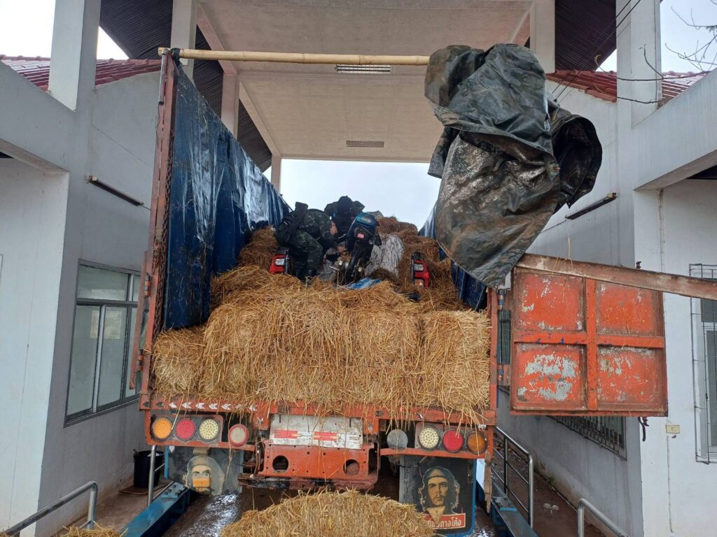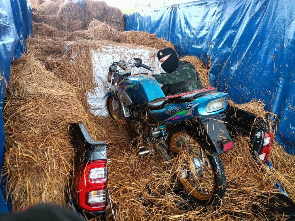 วันที่ 8 เมษายน 2568 เมื่อ วันที่ 6 เมษายน 2568 เวลา 16.15 น.พ.อ.สุพรรณ ร้อยพุทธ ผบ.บก.ควบคุม กกล.ผาเมือง ( ด้าน สปป.ลาว ) พ.อ.กฤตินันท์ นิโลบล รอง บก.ควบคุมผาเมือง ( ด้าน สปป.ลาว) ร่วมกับ นายวันชัย เกตุแก้ว นายอำเภอบ้านโคก จ.อุตรดิตถ์ และ พ.ต.อ.สมบูรณ์ คล่องใจ ผกก.สภ.บ้านโคก จว.อุตรดิตถ์ ได้ร่วมกันสกัดผู้นำรถยนต์และรถจักรยานยนต์ ออกนอกราชอาณาจักรผิดกฎหมาย จากสายรายงานว่าจะมีรถบรรทุก ขนาด 6 ล้อ ที่บรรทุกฝางอัดก้อนเพื่ออำพรางของผิดกฎหมายผ่านด่านจุดถาวร ภูดู่ ต.บ้านโคก อ.บ้านโคก จ.อุตรดิตถ์ เมื่อถึงเวลาดังกล่าว มีรถบรรทุก ขนาน 6 ล้อ ยี่ห้อ ISUZU สีฟ้าเทา ทะเบียน บก. 0298 ไชยะบูลี สปป.ลาว กำลังจอดอยู่ในลานตลาดภูดู่ เมื่อผู้ขับขี่เห็นเจ้าหน้าที่มีอาการพิรุธ จึงขับรถคันดังกล่าวออกจากตลาด ภูดู่ มุงสู่ จุดด่านถาวร ภูดู่ คาดว่าจะหลบหนีออกนอกประเทศ ทางทหารประจำการดังกล่าว จึงขับรถติดตามและนำรถไปขวางเส้นทางดังกล่าว จนรถบรรทุกจึงหยุด