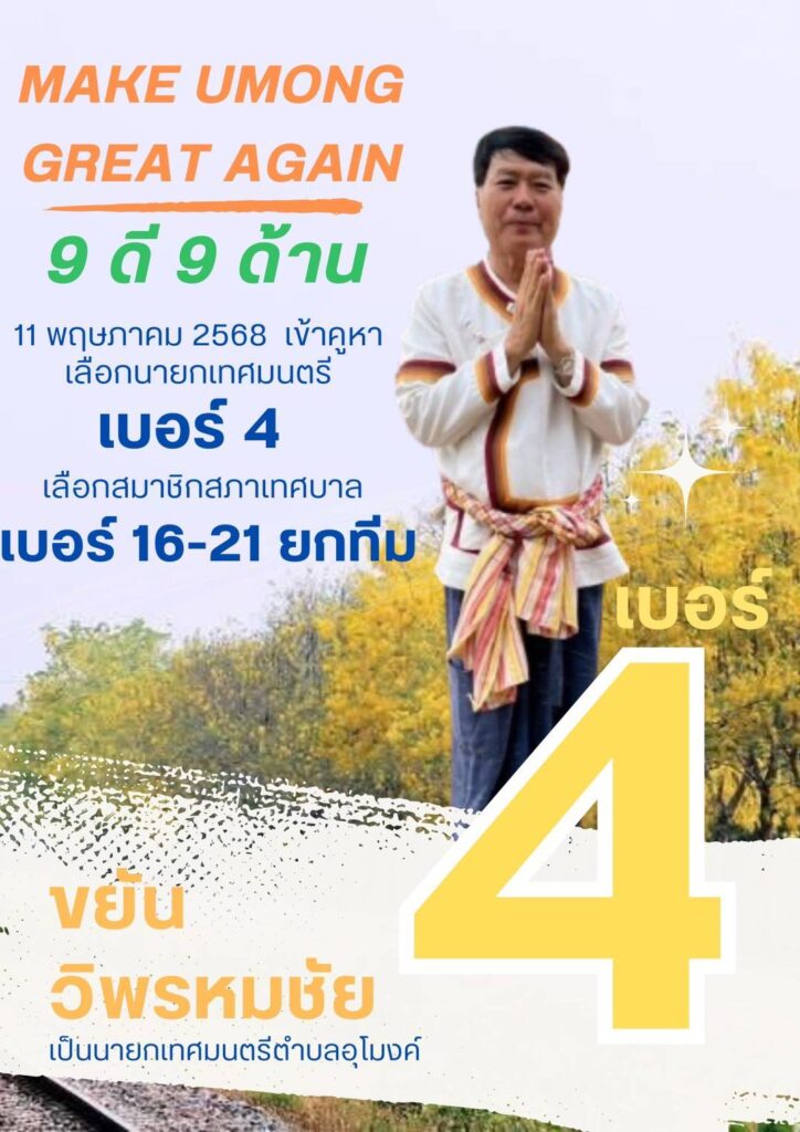 วันที่ 14 พฤษภาคม 2568 เมื่อ วันที่ 11 พฤษภาคม 2568 ที่ผ่านมา จากกรณีมีการเลือกตั้ง นายกเทศบาลนคร-นายกเทศบาลเมือง-เทศบาลตำบล พร้อมกันทั่วประเทศ บางจังหวัดที่งบประมาณมากๆ พรรคการเมืองระดับบ้านใหญ่จะมาสนับสนุนพร้อมหัวหน้าพรรคและสมาชิกพรรค ลงมาช่วยหาเสียงดังที่มีข่าวออกมาในสื่อทุกช่องทาง บางจังหวัดก็ได้นายก และสมาชิกสภาฯ บางจังหวัดก็ได้แต่สมาชิกสภาฯ ส่วนจังหวัดลำพูน ในพื้นที่ ตำบลอุโมงค์ อำเภอเมืองลำพูน จังหวัดลำพูน เขตเทศบาล ตำบลอุโมงค์ มีการแข่งขันสูงพอสมควร เพราะมีผู้สมัคร 4 คน ประกอบด้วย นายกิติพัฒน์ ธนินภิตินันท์ เบอร์ 1 น.ส.ดวงเดือน อินสินธุ์ เบอร์ 2 ดร.ชวิน คำบุญเรือง เบอร์ 3 และ เบอร์ 4 นายขยัน วิพรหมชัย ทุกเบอร์ได้ชูนโยบายเพื่อให้โดนใจชาวบ้านทั้ง 11 หมู่บ้าน ประชากร 13,663 คน ผลการเลือกตั้งที่ผ่านมา นายขยัน วิพรหมชัย เบอร์ 4 กลุ่ม ขยัน อุโมงค์ก้าวหน้า ชนะการเลือกตั้งด้วยคะแนน 3, 088 คะแนน นายขยัน วิพรหมชัย อดีต สส.พรรคประชาธิปัตย์ และอดีต นายก เทศบาล ตำบล อุโมงค์ 3 สมัย ได้นำชูนโยบาย 9 ดี 9 ด้าน ให้พ่อ-แม่ พี่น้องชาวเขตเทศบาล ตำบล อุโมงค์ ได้รับทราบและได้สัมผัสกับนโยบายที่จับต้องได้ จึงโดนใจชาวประชาในพื้นที่ จึงชนะคู่แข่งแบบทิ้งทวน ทางด้าน ว่าที่นายก ขยัน วิพรหมชัย และฝ่ายบริหารพร้อมที่จะสานงานเก่า เริ่มงานใหม่สมกับคำว่า การพัฒนาในพื้นที่ที่เป็นถิ่นเกิด เชิดชูอารยะประเพณีท้องถิ่น พัฒนารอบด้าน ด้วยความซื่อสัตย์ ยุติธรรม นาย ขยัน วิพรหมชัย และฝ่ายบริหาร มุ่งมั่นด้วยจิตสำนึกที่ชาวประชาเขตเทศบาล ตำบลอุโมงค์ อำเภอเมืองลำพูน จังหวัดลำพูน มอบคะแนนเสียงให้ ขอขอบพระคุณ ทุกคะแนนเสียงด้วยความเคารพและรักนับถือ นาย ขยัน วิพรหมชัย และฝ่ายบริหาร พร้อมที่จะนำความเจริญและการเปลี่ยนแปลง ในพื้นที่ ตำบล อุโมงค์ ให้ดีกว่าเดิมเพิ่มเติม สิ่งใหม่ๆ ในพื้นที่ ตำบลอุโมงค์ อำเภอเมืองลำพูน จังหวัดลำพูน ภายใต้ คำว่า อุโมงค์ เมืองคนสุภาพดี ทุกภาคีมีส่วนร่วม ศูนย์รวมแห่งภูมิปัญญา
