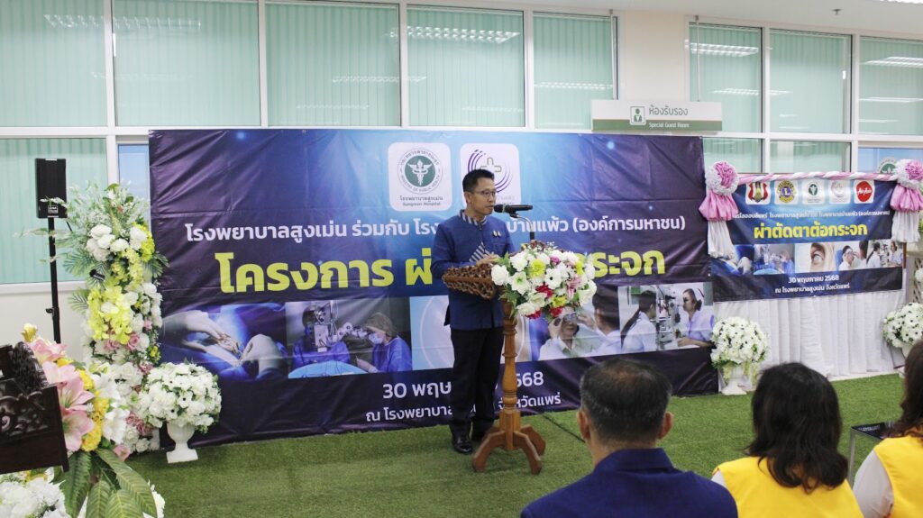 วันที่ 31 พฤษภาคม 2568 เวลา 09.00 น.บริเวณชั้น 2 โรงพยาบาลสูงเม่น ต.พระหลวง อ.สูงเม่น จ.แพร่ นพ.แสงชัย พงศ์พิชญ์พิทักษ์ ผอ.โรงพยาบาลสูงเม่น พร้อม นายสราวุธ กลไกร รอง ผอ.โรงพยาบาลสูงเม่น ฝ่ายบริหารทั่วไป และแพทย์-พยาบาล และเจ้าหน้าที่ทุกหน่วยงานและ ทุกฝ่าย ร่วมเปิดโครงการผ่าตัดตาต้อกระจก ร่วมกับทีมงานโรงพยาบาลจักษุบ้านแผ้ว จ.สมุทรสาคร นำคณะจักษุแพทย์เคลื่อนที่และทีมงานกว่า 35 คน มาให้บริการประชาชนในพื้นที่ อ.สูงเม่น และใกล้เคียง กว่า 365 คน