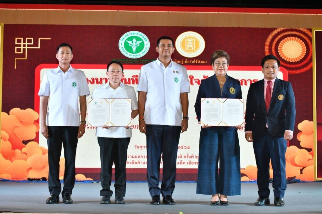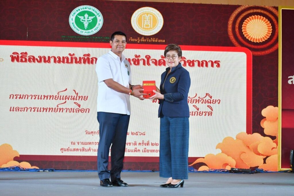 รมช.สธ. “ชัยชนะ” ประเดิมงานแรก เยี่ยมชมมหกรรมสมุนไพรแห่งชาติ ครั้งที่ 22 พร้อมร่วม เป็นประธานและสักขีพยานงาน MOU ระหว่าง กรมการแพทย์แผนไทยฯ กับ ม.หัวเฉียวเฉลิมพระเกียรติกรมการแพทย์แผนไทยและการแพทย์ทางเลือก จับมือ มหาวิทยาลัยหัวเฉียวเฉลิมพระเกียรติ ลงนามบันทึก ความเข้าใจ MOU พัฒนาหลักสูตร วิทยาศาสตร์สุขภาพ การแพทย์แผนไทยและจีน ชี้เป็นก้าวสำคัญในด้านบูรณาการทรัพยากร – วิชาการ – การบริการสุขภาพ โดยมี รมช.สธ.ชัยชนะ ให้เกียรติร่วมเป็นประธานและสักขีพยานในงาน พร้อมมอบใบประกาศนียบัตรรับรองศูนย์เวลเนสอัตลักษณ์ไทยวันที่ 4 กรกฎาคม 2568 ที่เวทีกลาง ในงานมหกรรมสมุนไพรแห่งชาติ ครั้งที่ 22 (Thailand Herbal Expo 2025) ภายใต้แนวคิด “ภูมิปัญญาไทย ซอฟต์พาวเวอร์ไทย สร้างเศรษฐกิจไทย” อิมแพ็ค เมืองทองธานี จัดขึ้นระหว่างวันที่ 2 – 6 กรกฎาคม 2568 โดยกรมการแพทย์แผนไทยและการแพทย์ทางเลือก ร่วมกับภาคีเครือข่าย โดยวันนี้ นายชัยชนะ เดชเดโช รัฐมนตรีช่วยว่าการกระทรวงสาธารณสุข ได้เดินทางมาเยี่ยมชมงานดังกล่าว พร้อมทั้งร่วม เป็นประธานและสักขีพยานในพิธีลงนามบันทึกความเข้าใจ MOU ระหว่าง กรมการแพทย์แผนไทยและการแพทย์ทางเลือก กับ มหาวิทยาลัย หัวเฉียวเฉลิมพระเกียรติ พร้อมมอบใบประกาศนียบัตรรับรองศูนย์เวลเนสอัตลักษณ์ไทย นับเป็นการออกงานครั้งแรก หลังเข้ารับตำแหน่งรัฐมนตรีช่วยว่าการกระทรวงสาธารณสุข อย่างเป็นทางการ โดยมี นายแพทย์สมฤกษ์ จึงสมาน อธิบดีกรมการแพทย์แผนไทยและการแพทย์ทางเลือก พร้อมด้วยผู้บริหารกระทรวงสาธารณสุข และภาคีเครือข่ายการจัดงาน ให้การต้อนรับนายชัยชนะ กล่าวแสดงความยินดีในพิธีลงนามบันทึกความเข้าใจครั้งนี้ ว่า รู้สึกยินดีอย่างยิ่ง ที่ได้มีโอกาสร่วมเป็นประธานและสักขีพยาน ในพิธีลงนามบันทึกความเข้าใจ ระหว่างกรมการแพทย์แผนไทยและการแพทย์ทางเลือก กับมหาวิทยาลัยหัวเฉียวเฉลิมพระเกียรติในวันนี้ ซึ่งถือเป็นอีกหนึ่งก้าวสำคัญ ของการพัฒนาทางวิชาการด้านการแพทย์ แผนไทยและการแพทย์ทางเลือกของประเทศไทย ที่จะเป็นรากฐานที่มั่นคง ในการส่งเสริมการศึกษาวิจัยเชิงวิชาการ การแลกเปลี่ยนองค์ความรู้ และการพัฒนาศักยภาพบุคลากรในระดับที่ลึกซึ้งและยั่งยืนยิ่งขึ้น โดยเฉพาะอย่างยิ่ง ในยุคที่วิทยาศาสตร์สุขภาพแบบองค์รวม มีบทบาทสำคัญในการดูแลสุขภาพประชาชนความร่วมมือครั้งนี้ ไม่เพียงแต่จะช่วยขับเคลื่อนองค์ความรู้ ด้านการแพทย์แผนไทยและการแพทย์แผนจีน ให้มีหลักฐานเชิงประจักษ์และทันสมัย หากยังจะช่วยสร้างเวทีให้นักศึกษา นักวิจัย และบุคลากร