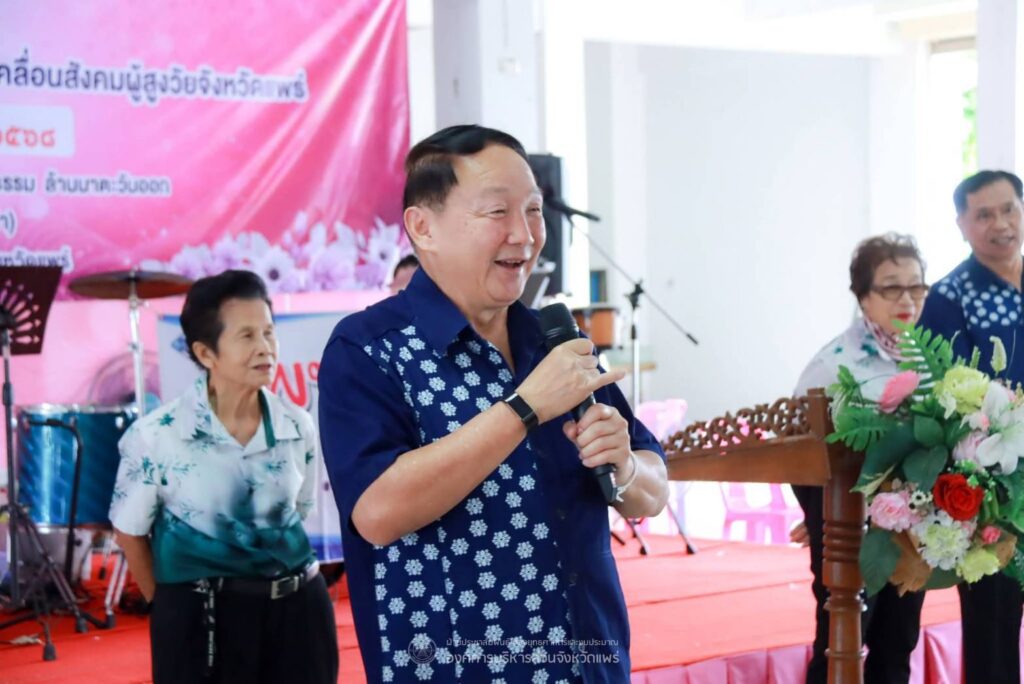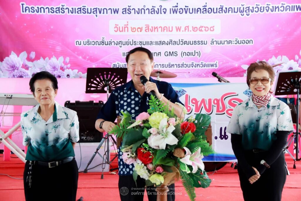นายก อบจ.แพร่ เปิดโครงการสร้างเสิมสุขภาพ สร้างกำลังใจ เพื่อขับเคลื่อนสังคมผู้สูงวัย ต.ทุ่งศรี อ.ร้องกวาง จ.แพร่วันที่ 27 สิงหาคม 2568 นายอนุวัธ วงศ์วรรณ นายกองค์การบริหารส่วนจังหวัดแพร่ เป็นประธานพิธีเปิดโครงการสร้างเสริมสุขภาพ สร้างกำลังใจ เพื่อขับเคลื่อนสังคมผู้สูงวัยจังหวัดแพร่ รุ่นที่ 5 ณ ศูนย์ประชุมและแสดงศิลปวัฒนธรรมล้านนาตะวันออกและกลุ่มประเทศ GMS ทั้งนี้ มีผู้สูงอายุจากตำบลทุ่งศรี อำเภอร้องกวาง จำนวน 100 คน เข้าร่วมโครงการ โดยมี นายอัศวิน วรรณจรรยา รองนายกเทศมนตรีตำบลร้องกวาง, นายเนาวรัตน์ คณะนัย ประธานสมาคมสภาผู้สูงอายุแห่งประเทศไทย จังหวัดแพร่, นายวิตติ แสงสุพรรณ รองนายกองค์การบริหารส่วนจังหวัดแพร่, นางสาวสุรีย์ ทาประเสริฐ เลขานุการนายกองค์การบริหารส่วนจังหวัดแพร่ และคณะเพชร อบจ.แพร่, นางสาวปาริชาติ หิรัญรัตน์ รองปลัดองค์การบริหารส่วนจังหวัด รักษาราชการแทนปลัดองค์การบริหารส่วนจังหวัดแพร่, นางดวงเดือน ธงชัยเลิศ หัวหน้าสำนักปลัดองค์การบริหารส่วนจังหวัด และเจ้าหน้าที่จากองค์การบริหารส่วนจังหวัดแพร่ ร่วมพิธีเปิด โดยมีวัตถุประสงค์เพื่อส่งเสริมให้ผู้วัยได้ทำกิจกรรมร่วมกัน เกิดการพบปะสร้างความสัมพันธ์ ความรัก ความสามัคคี คุณธรรมและจริยธรรม และเพื่อให้ผู้สูงวัยได้เรียนรู้แนวทางการปฏิบัติตนเมื่อเกิดภัยพิบัติหรือเหตุฉุกเฉินต่างๆ โดยได้รับการสนับสนุนวิทยากร จาก สำนักงานสาธารณสุขจังหวัดแพร่ และสำนักงานป้องกันและบรรเทาสาธารณะภัยจังหวัดแพร่