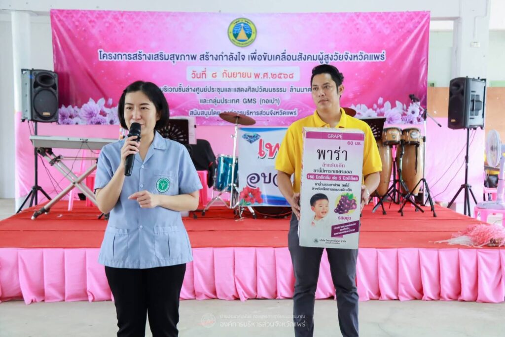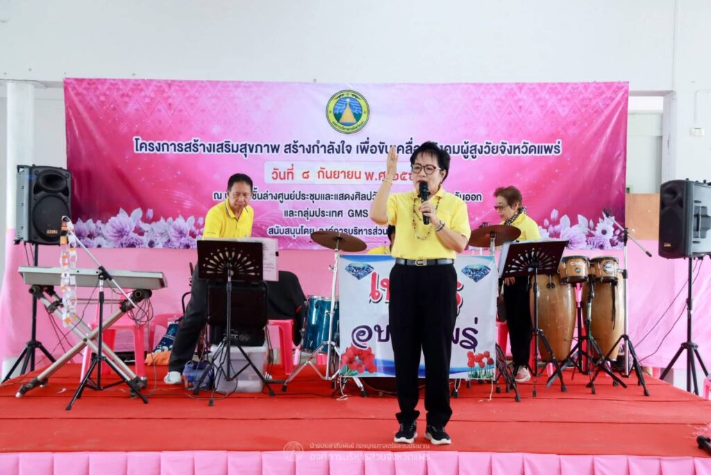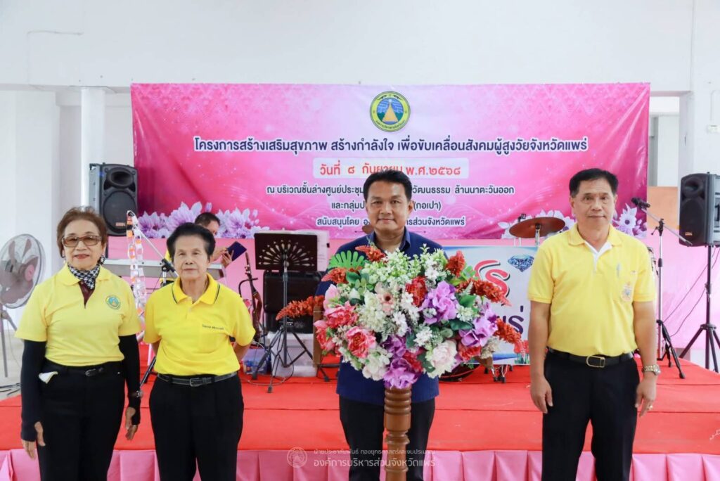อบจ.แพร่ จัดโครงการสร้างเสริมสุขภาพ สร้างกำลังใจ เพื่อสังคมผู้สูงวัย ต.ห้วยอ้อ อ.ลอง จ.แพร่วันที่ 8 กันยายน 2568 นายอนุวัธ วงศ์วรรณ นายกองค์การบริหารส่วนจังหวัดแพร่ มอบหมายให้ นายวิตติ แสงสุพรรณ รองนายกองค์การบริหารส่วนจังหวัดแพร่ เป็นประธานพิธีเปิดโครงการสร้างเสริมสุขภาพ สร้างกำลังใจ เพื่อขับเคลื่อนสังคมผู้สูงวัยจังหวัดแพร่ รุ่นที่ 13 ณ ศูนย์ประชุมและแสดงศิลปวัฒนธรรมล้านนาตะวันออกและกลุ่มประเทศ GMS ทั้งนี้ มีผู้สูงอายุจากตำบลห้วยอ้อ อำเภอลอง จำนวน 100 คน