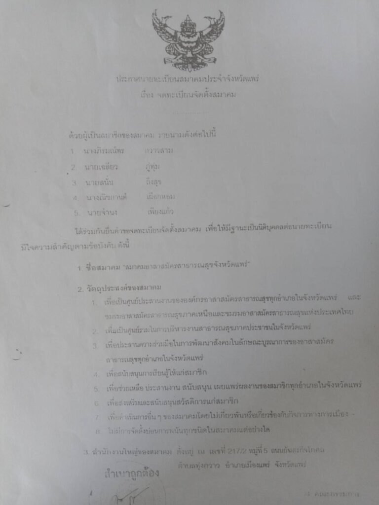 วันที่ 20 กันยายน 2568 จากการเปิดเผยของสมาชิก สมาคมอาสาสมัครสาธารณสุข จังหวัดแพร่ ( อสม.จ.แพร่ ) ได้มาร้องเรียน บก.นสพ.ธุรกิจแพร่-ออนไลน์ เรื่อง การจัดตั้งสมาคมฌาปนกิจสงเคราะห์ อาสาสมัครสาธารณสุข จังหวัดแพร่ ว่าถูกต้องตามกฎหมายหรือไม่ และให้ทางด้าน สื่อ ติดตามนำความจริงมาตีแผ่ในเรื่องดังกล่าวด้วย เพื่อให้ความจริงกระจ่างของการจัดตั้งสมาคมฌาปนกิจสงเคราะห์ อสม. จ.แพร่ ได้รับการยืนยันจากฝ่ายบริหาร สสจ.แพร่ ถึงการจัดตั้ง สมาคมอาสาสมัครสาธารณสุข ( อสม.) ประจำหมู่บ้าน ระดับอำเภอ และระดับ จังหวัด นั้นเป็นการสั่งการจากกระทรวง สาธารณสุข ในส่วนการเลือกตั้งนายกสมาคม อสม.ระดับ จังหวัดแพร่ เมื่อวันที่ 29 กุมภาพันธ์ 2567 ที่ผ่านมานั้น นายมรกต ชมพูวัง ได้รับเลือกการแต่งตั้งเป็น นายกสมาคม อสม. จ.แพร่ ถูกต้องตามกฎหมาย ตามที่ได้ยื่นการจัดตั้งกับนายทะเบียนสมาคมประจำจังหวัดแพร่ เมื่อ วันที่ 28 พฤษภาคม 2552 แต่ในการจัดตั้ง สมาคมฌาปนกิจสงเคราะห์ อาสาสมัครสาธารณสุข จังหวัดแพร่ ของสมาชิก อสม. จ.แพร่ นั้นไม่เกี่ยวข้องกับ สำนักงาน สาธารณสุข จังหวัดแพร่ แต่ประการใด เพราะข้อมูลในการจัดตั้งสมาคมฌาปนกิจสงเคราะห์ อสม. ทั่วประเทศ นั้นได้มีการสั่งการจาก กระทรวง สาธารณสุข โดยตรง เพราะเกี่ยวข้องกับการแสวงหาผลประโยชน์จากผู้เสียชีวิตที่เป็นสมาชิกสมาคมฌาปนกิจสงเคราะห์ อสม.ทั่วประเทศ ต่างๆนั้นจะต้องขึ้นตรงต่อกระทรวงสาธารณสุข รายงานโดยตรงต่อนายกรัฐมนตรี และช้องคล้องกับกฎระเบียบ กรมกิจการสตรีและครอบครัว โดยการดำเนินการจัดเก็บเงินช่วยเหลือซึ่งกันและกัน ในนามการสงเคราะห์ ตาม พ.ร.บ.ฌาปนกิจสงเคราะห์ พ.ศ. 2545 แต่ในการดำเนินการจัดตั้ง สมาคมฌาปนกิจสงเคราะห์ สมาชิก อสม. จังหวัดแพร่ นั้น ถือว่าเป็นการกระทำผิดกฎหมาย พ.ร.บ.ฌาปนกิจสงเคราะห์ พ.ศ. 2545 ในมาตรา 33 ห้ามมิให้ผู้ใดชักชวน หรือจัดการโดยวิธีใดๆ ที่คล้ายคลึงกันให้ผู้ใดเข้าเป็นสมาชิกสมาคมฌาปนกิจสงเคราะห์ ที่ยังมิได้จดทะเบียนโดยถูกต้องตามกฎหมาย มาตรา 34 ห้ามมิให้ผู้ใดชักชวน ชี้ช่อง หรือจัดการให้ผู้อื่นเข้าเป็นสมาชิกในสมาคมฌาปนกิจสงเคราะห์ โดยได้รับผลประโยชน์ตอบแทนเป็นเงินหรือทรัพย์สินอื่น ไม่ว่าจะเป็นสินจ้างหรือค่าใช้จ่ายจากการชักชวน ชี้ช่อง เป็นต้น ถ้าเปรียบเทียบกับการจัดตั้ง สมาคมอาสาสมัครสาธารณสุขจังหวัดแพร่ ถือว่าคนละประเด็นกับการดำเนินการของสมาคม ฌาปนกิจสงเคราะห์ อสม.จังหวัดแพร่ ในปัจจุบันนั้น เจตนา การจัดตั้งสมาคมอาสาสมัครสาธารณสุข จังหวัดแพร่ มีวัตถุประสงค์ คือ 1 เป็นศูนย์กลางป