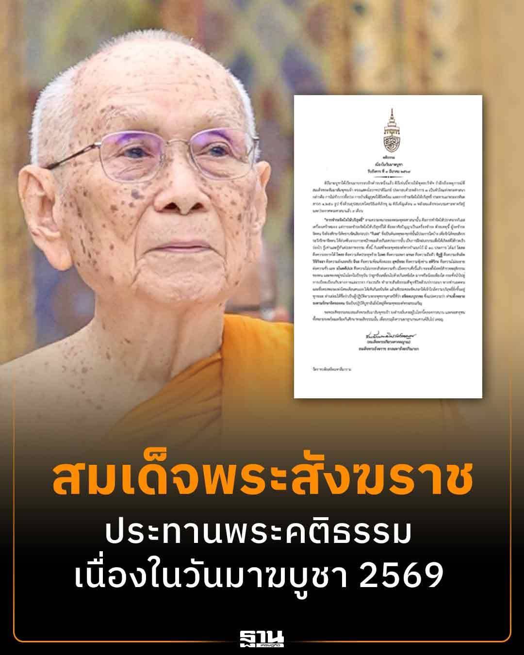สำนักงานเลขานุการสมเด็จพระสังฆราช เผยแพร่พระคติธรรมเนื่องในวันมาฆบูชา 3 มีนาคม 2569 โดยเจ้าพระคุณ สมเด็จพระอริยวงศาคตญาณ สมเด็จพระสังฆราช สกลมหาสังฆปริณายก ประทานพระคติธรรม ความว่า.“ดิถีมาฆบูชาได้เวียนมาบรรจบอีกคำรบหนึ่งแล้ว ดิถีเช่นนี้ชวนให้พุทธบริษัท รำลึกถึงเหตุการณ์ที่สมเด็จพระสัมมาสัมพุทธเจ้า ทรงแสดงโอวาทปาติโมกข์ ประกอบด้วยหลักการ 3 เป็นหัวใจแห่งพระศาสนา กล่าวคือ การไม่ทำบาปทั้งปวง การบำเพ็ญกุศลให้ถึงพร้อม และการชำระจิตใจให้บริสุทธิ์ ประทานแก่พระอรหันตสาวก 1,250 รูป ซึ่งล้วนอุปสมบทโดยวิธีเอหิภิกขุ ณ ดิถีเพ็ญเดือน 3 หลังสมเด็จพระบรมศาสดาตรัสรู้และประกาศพระศาสนาแล้ว 9 เดือน .”การชำระจิตใจให้บริสุทธิ์” ตามความหมายของพระพุทธศาสนานั้น คือการทำจิตให้ปราศจากกิเลสเครื่องเศร้าหมอง แต่การจะชำระจิตใจให้บริสุทธิ์ได้ ต้องอาศัยปัญญาเป็นเครื่องชำระ ด้วยเหตุนี้ ผู้จะชำระจิตตน จึงต้องศึกษาให้ทราบชัดเสียก่อนว่า “กิเลส” ซึ่งเป็นต้นเหตุของทุกข์นั้นมีประการใดบ้าง เพื่อจักได้คอยสังวรระวังรักษาจิตตน ให้ล่วงพ้นจากภาวะหมักหมมด้วยกิเลสประการนั้น เป็นการฝึกฝนอบรมเพื่อให้เกิดสติได้รวดเร็วว่องไว รู้เท่าและรู้ทันต่อสภาพธรรม ทั้งนี้ กิเลสที่พระพุทธองค์ทรงจำแนกไว้ มี 10 ประการ ได้แก่ โลภะ คือความอยากได้ โทสะ คือความคิดประทุษร้าย โมหะ คือความเขลา มานะ คือความถือตัว ทิฏฐิ คือความเห็นผิด วิจิกิจฉา คือความลังเลสงสัย ถีนะ คือความท้อแท้ถดถอย อุทธัจจะ คือความฟุ้งซ่าน อหิริกะ คือความไม่ละอายต่อความชั่ว อโนตตัปปะ คือความไม่เกรงกลัวต่อความชั่ว.เมื่อทราบดั่งนี้แล้ว ขอจงตั้งโจทย์สำรวจพฤติกรรมของตน และของหมู่ชนในโลกในปัจจุบัน ว่าถูกขับเคลื่อนไปด้วยกิเลสข้อใด มากหรือน้อยเพียงใด กระทั่งนำไปสู่การเบียดเบียนกันทางกายและวาจา ก่อเวรภัย ทำลายสันติธรรมที่ทุกชีวิตล้วนปรารถนา หากท่านอดทนและซื่อตรงพอจะเพ่งโทษเตือนตนเอง ให้เห็นกิเลสในจิต แล้วเพียรลดละขัดเกลาให้เข้าใกล้ความบริสุทธิ์ยิ่งขึ้นอยู่ทุกขณะ ท่านย่อมได้ชื่อว่าเป็นผู้ปฏิบัติตามพระพุทธานุศาสนีที่ว่า สจิตฺตมนุรกฺขถ ซึ่งแปลความว่า ท่านทั้งหลายจงตามรักษาจิตของตน จัดเป็นปฏิบัติบูชาอันยิ่งใหญ่ที่พระพุทธองค์ทรงสรรเสริญ.ขอพระสัทธรรมของสมเด็จพระสัมมาสัมพุทธเจ้า จงดำรงมั่นคงอยู่ในโลกนี้ตลอดกาลนาน และขอสาธุชนทั้งหลายจงพร้อมเพรียงกันศึกษาพระสัทธรรมนั้น เพื่อบรรลุถึงความผาสุกเกษมศานต์สืบไป เทอญ.”
