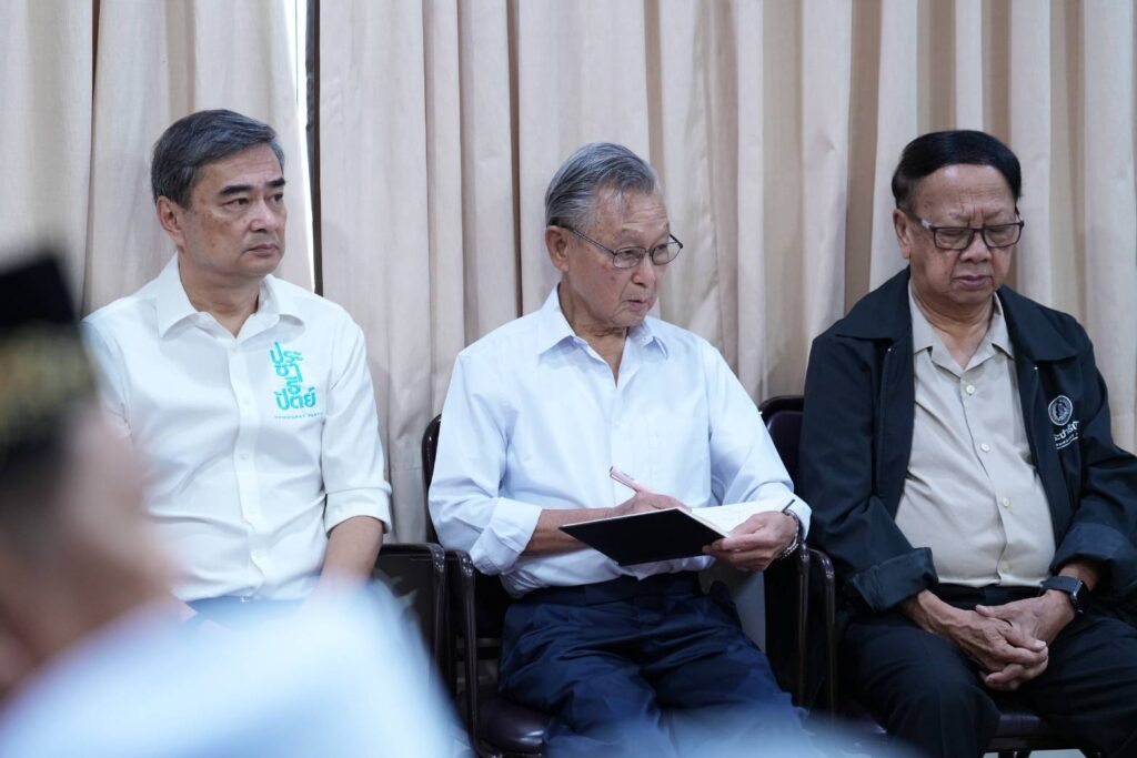 80 ปี ประชาธิปัตย์คึกคัก! ‘อภิสิทธิ์ – ชวน’ นำทำบุญ 3 ศาสนา บวงสรวงพระแม่ธรณีฯ เสริมสิริมงคลสู้ศึกการเมือง สมาชิกพรึบเสื้อฟ้าแน่นเศรษฐศิริเมื่อวันที่ 6 เมษายน 2569 บรรยากาศจากพรรคประชาธิปัตย์ ถนนเศรษฐศิริ ในโอกาสวันครบรอบสถาปนาพรรคครบ 80 ปี ตั้งแต่ช่วงเช้าเป็นไปอย่างคึกคัก บรรดาแกนนำพรรค ตั้งแต่กรรมการบริหาร สส. ของพรรค อดีตแกนนำพรรค ไปจนถึงอดีต สส. สมาชิกพรรค ตลอดจนประชาชนทั่วไป ให้ความสนใจเข้าร่วมงานอย่างหนาตา ส่วนใหญ่พร้อมใจสวมเสื้อที่มีตราสัญลักษณ์พรรคเพื่อแสดงพลังความเป็นหนึ่งเดียวเริ่มต้นเอาฤกษ์เอาชัยตั้งแต่เวลา 07.00 น. สมาชิกพรรคต่างทยอยเดินทางมาถึงสำนักงานใหญ่พรรคประชาธิปัตย์อย่างไม่ขาดสาย จนกระทั่งเวลา 07.30 น. ได้มีการประกอบพิธีทางศาสนาอิสลาม ณ ห้องรับรอง ชั้น 3 อาคาร ม.ร.ว.เสนีย์ ปราโมช นำโดย อิหม่าม อะหะหมัด ขามเทศทอง รองประธานกรรมการอิสลามประจำกรุงเทพมหานคร และคณะ ต่อมาภายหลังการประกอบพิธีดุอาอ์ขอพรอย่างสงบ สง่างาม นายอภิสิทธิ์กล่าวว่า ตลอดระยะเวลา 80 ปีที่ผ่านมา พี่น้องชาวมุสลิมถือว่ามีบทบาทสำคัญอย่างยิ่งในการสนับสนุนพรรคมาตั้งแต่ช่วงก่อตั้งจนถึงปัจจุบัน ซึ่งพรรคประชาธิปัตย์สามารถดำรงอยู่ได้เพราะการรักษาอุดมการณ์และค่านิยมที่ประกาศไว้เมื่อ 80 ปีที่แล้ว โดยเฉพาะอุดมการณ์ 10 ข้อของพรรค และในข้อหนึ่งได้ระบุชัดเจนถึงเรื่องการทำนุบำรุงศาสนา ซึ่งพรรคได้ดำเนินนโยบายสานความสัมพันธ์ระหว่างพี่น้องต่างศาสนามาโดยตลอด เพราะถือเป็นพื้นฐานสำคัญของการสร้างสังคมที่สงบสุขและสันติสุข“มีเรื่องหนึ่งที่ผมพูดเสมอและประทับใจมาก คือสมัยก่อนที่ยังมีโทรเลข ทุกครั้งที่ผมได้รับเลือกตั้งเป็น สส. ผมจะได้รับโทรเลขฉบับหนึ่งจากคุณเล็ก นานา ส่งมาแสดงความยินดีสั้นๆ ทุกครั้ง ความผูกพันที่คุณเล็กมีต่อคนของประชาธิปัตย์และสถานที่แห่งนี้ คือสิ่งที่พวกเราทุกคนระลึกถึงอยู่ตลอดเวลา และตั้งใจจะเดินหน้าทำให้พรรคเป็นที่พึ่งที่หวังของทุก ๆ คน รวมทั้งพี่น้องชาวมุสลิมต่อไป” นายอภิสิทธิ์กล่าวจากนั้นในเวลา 08.49 น. ถือเป็นฤกษ์มงคล ได้มีการประกอบพิธีบวงสรวงสักการะองค์พระแม่ธรณีบีบมวยผม องค์สัญลักษณ์อันศักดิ์สิทธิ์ที่อยู่คู่พรรคประชาธิปัตย์มาอย่างยาวนาน โดยมีพราหมณ์ณัฏฐปุรเชษฐ์ สุขสมบัติวัฒนา เป็นผู้ดำเนินพิธีอัญเชิญเทวดาเพื่อความเป็นสิริมงคลและเสริมดวงชะตาให้กับพรรค จากนั้นเข้าสู่ช่วงที่มีอดีต สส. ของพรรค รวมถึงนักการเมืองชื่อดังต่างพรรค เดินทางมาร่วมแสดงความยินดี อาทิ นายเอกนัฏ พร้อมพันธุ์ นายส